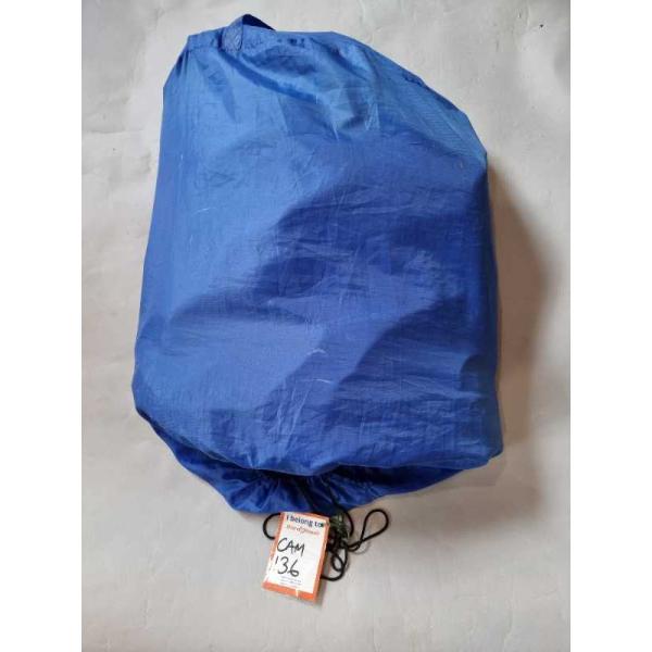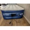 Single self-inflating mattress, 1.7m x 1m x 0.4m, blue and beige.