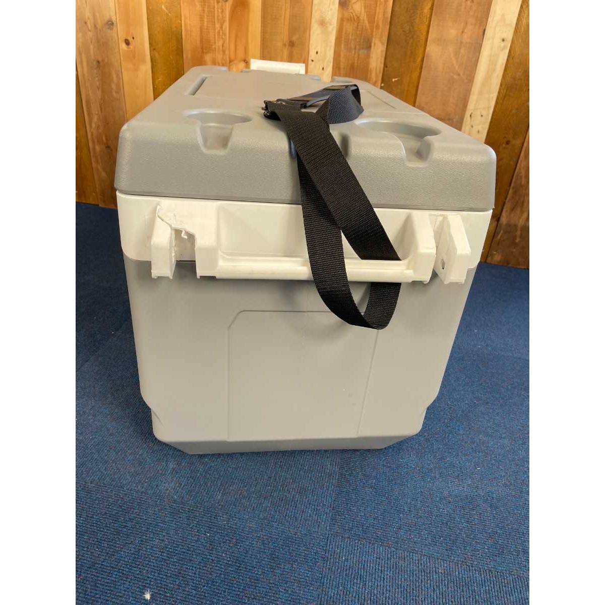 Original handle was broken, it now has a fabric strap but care must be taken when pulling along. Do not use the strap if the load is heavy!