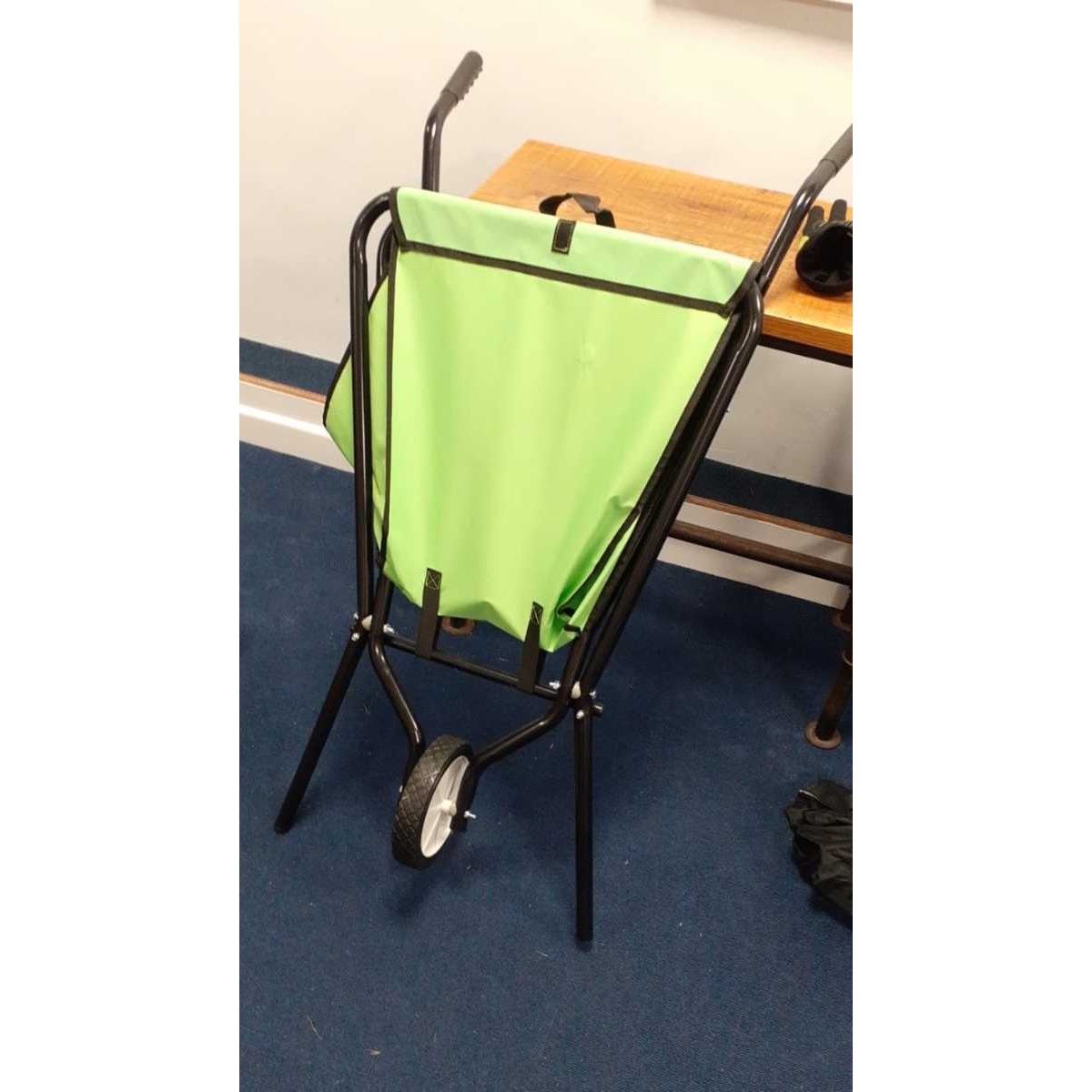 Lightweight collapsible wheelbarrow. Please note, this item can't be used to transport heavy items. Please use with the protective liner provided.